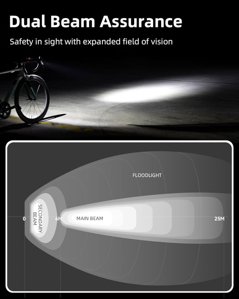 -Fabricado en aleación de aluminio -Batería 3000 mAh -Peso 103g -Tiempo de carga: 3.5h -5 Modos de funcionamiento: luz alta, media, baja y 2 modos flas -Protección impermeable IPX6 -Carga tipo C